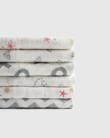 Made of 100% cotton muslin, our soft, breathable, and adorably patterned swaddles will be your go-to baby basic for whatever the day brings – from tummy-time blanket, to on-the-go diaper-changing surface, to nursing cover-up and more. Our pack of 6 means you’ll always have one on hand.