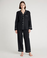 Relaxed, soft, and ultra-comfortable, our 100% European Linen Long Sleeve Pajama Set with Piping is the perfect addition to your loungewear collection. Made from the highest quality linen and sustainably sourced from Europe, these pajamas are lightweight, breathable, and comfortable. Linen is also naturally temperature regulating, so these PJs are perfect 365 days a year. Bonus: our linen fabric is also highly durable, ensuring that these pajamas will last for many seasons to come.
