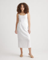 Crafted from the finest quality linen sourced from Europe, our 100% European Linen Scoop Neck Midi Dress is soft, breathable, and lightweight, making it the perfect choice for warm weather. The elegant scoop neck and midi length of the dress make it a versatile addition to any wardrobe. Whether you're dressing it up for a special occasion or keeping it casual for a day out, this dress is sure to turn heads.