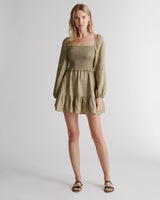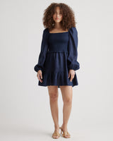 Dreamy yet durable, this breathable linen tiered mini dress has a smocked bodice, square neckline and puff sleeves. Comfy fit and super-cute for any occasion. Our linen collection is made from 100% European flax linen—an eco-friendly, and resource light material.