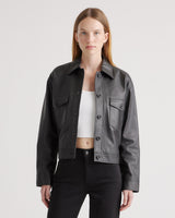 Looks like a denim jacket, feels next-level luxurious. Our 100% Leather Cropped Jacket is crafted from top-grain sheep leather that's buttery smooth to the touch. With a contemporary cropped fit, dropped shoulders, and premium finishes, this fresh twist on a classic style is sure to give your wardrobe an edgy yet effortless update.