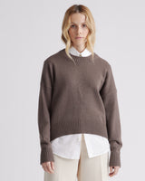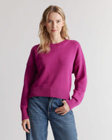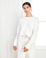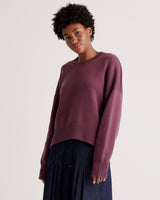 The boyfriend crew has an oversized, cropped silhouette, with ribbed detail on cuffs and hem. It's made from 100% organic cotton for a soft, slouchy vibe. It has a versatile look, ready to be worn under your favorite coat but chic enough to wear standalone—or even dress up for brunch.
