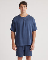 100% Washable Silk Henley Short Set