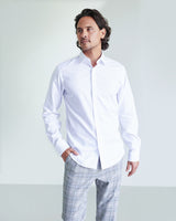 The classic dress shirt that puts all others to shame. Where most dress shirts use a 60-80's count thread, we use the finest Supima 120's cotton, resulting in a much smoother, polished fabric is typically found in only luxury or bespoke shirting, The Sustainable bamboo collar stays and 30% recycled PET buttons make you feel good about feeling good.