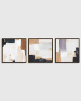 Blocks of color. Subtle layers. Textured brush strokes. This abstract triptych (set of 3 prints), with its shades of earth tones and neutrals, envelops any room in serenity. Hand-painted final touches make each piece unique.