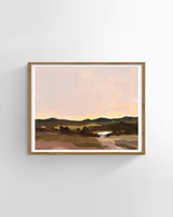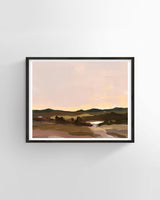 A piece that plays well with others, the medium-size Anzu Landscape print on watercolor paper, with its subtly saturated dusk-red sky, pairs equally well with minimalist neutral furniture or rich antique-style decor.