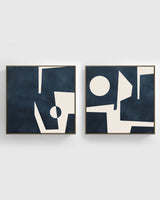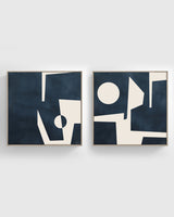 Moon in a midnight sky. Our Arata Abstract Wall Duo with its bold use of color and stark contrast feels like a true gallery find. The set of 2 large-scale, float-mounted prints on canvas are a knockout in any room with an expanse of wall space.
