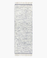 Expertly hand-knotted by artisans in India, each of our natural wool rugs is its own unique piece. And thanks to yarns that are equal parts soft and strong, it can handle the wear and tear of constant foot traffic and feel cozy underfoot. The hand-sculpted textural striped design of the Auden Rug in shades of navy and ivory offers the ideal base for any decor.