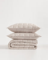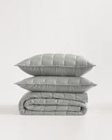 The super soft quilt set you've always dreamed of, now available in a classic box design. The quilted box-stitch pattern delivers a dose of texture while also feeling luxuriously soft and silky smooth. This mid-weight quilt has temperature-regulating properties, making it perfect for year-round comfort. It's crafted from 100% viscose from organic bamboo, which is a renewable resource and one of the planet's most resource-efficient materials—so you can sleep even better. Set includes quilt and shams.