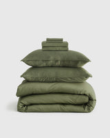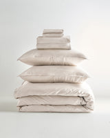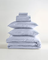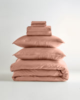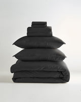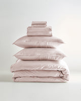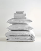 The super soft bedding set you've always dreamed of. Our mid-weight bamboo duvet set is 100% viscose from organic bamboo which is one of the planet's most resource-efficient materials as it grows quickly and uses far less water than cotton. Our deluxe bedding bundle is luxuriously soft and silky smooth with a sateen weave and temperature regulating properties. Featuring clean, tailored hems on the shams and duvet, this set is perfect for year-round comfort.