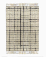 Rima is a dream-a. Super soft shag in an asymmetric pattern, with contrast weave in a check style. The fringe adds a little whimsy to your wooly friend, and the coloring is perfect for any bluesy hued rooms.