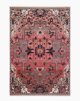 Inspired by the beauty of vintage sun-bathed Turkish designs, the Rochelle rug showcases detailed traditional motifs that have been updated with on-trend, saturated colorways. This rug has a bold center medallion in vibrant tones of pink, navy, black, and gray. It features cotton fringe detailing, a natural result of weft yarns, that echoes hand-knotted construction and adds brilliant texture to the plush and durable polypropylene pile.