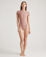 A more modern version of the timeless, tucked-in tee look. This short sleeve bodysuit is crafted out of a supportive, yet lightweight and buttery soft, blend of organic cotton and spandex. Pair it with a cardigan and jeans on chilly mornings and then rock it on its own once the day warms up, or slip it under a skirt for an effortlessly chic look. With full coverage and supportive stretch, our Stretch Cotton Jersey Short Sleeve Bodysuit checks all the boxes.