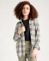 In neutrals or plaids, this shirt has a classic, versatile knit look. It's the perfect layering shirt and we can't get enough of it. Made with super soft and stretchy fabric for comfort in the relaxed fit, you can throw this on with anything for a casual-chic style.