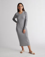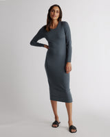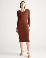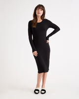 We've added long sleeves to our favorite rib knit dress. With a classic scoop neckline and midi-length, this rib knit dress will take you from day to night. So comfy and versatile, with a lot of stretch for the perfect fit. Tencel™ lyocell is a biodegradable fabric made from cellulose found in wood pulp. It is softer, more breathable, and uses 10-20 times less water in production compared to cotton.