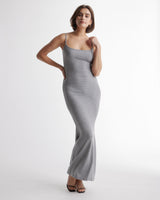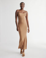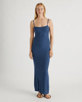 We know you're going to love this one. Tencel™ ribbed knit. Body-hugging fit. Maxi length. Spaghetti straps. Straight neckline. Our soft, comfy Tencel is a biodegradable fabric made from cellulose found in wood pulp. It is softer, more breathable, and uses 10-20 x less water in production compared to cotton. So you can feel good in looking good.