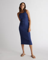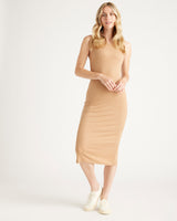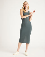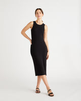 This sleeveless, scoop neck, midi-length rib knit dress is everything. So comfy and versatile, with a lot of stretch for the perfect fit, in a fabric that's drapey, pill-resistant, soft, and slimming. Tencel™ lyocell is a biodegradable fabric made from cellulose found in wood pulp. It is softer, more breathable, and uses 10-20 times less water in production compared to cotton.