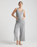 This Tencel™ jumpsuit is perfection. Not only is it lightweight, stretchy and super-soft, it is also nursing and pumping friendly. With patch pockets you can easily store all of life’s necessities. This versatile jumpsuit can carry you through all stages of pregnancy and beyond. Tencel™ lyocell is a biodegradable fabric made from cellulose found in wood pulp. It is softer, more breathable, and uses 10-20 times less water in production compared to cotton.