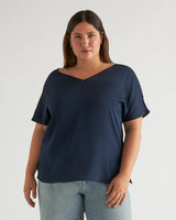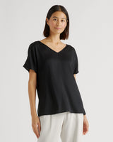 Washable Stretch Silk Reversible V-Neck Blouse