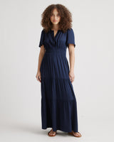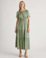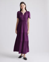 This tiered maxi goes with the flow thanks to its fluid tiered silhouette and flexibility to dress up or dress down. Short sleeves make it wearable year-round, and a smocked waistband gives it an extra-comfortable fit. Our bestselling premium mulberry silk with a hint of stretch is low-maintenance and washable. Plus, silk fiber contains 18 kinds of amino acids that make it amazing for skin nourishment, hypo-allergenic, and naturally thermoregulating to help maintain body temperature.