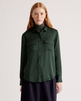 Washable Stretch Silk Utility Long Sleeve Blouse