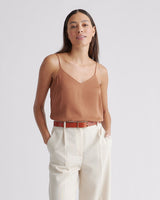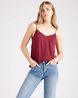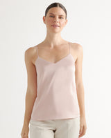 A new take on our classic washable silk camisole. Featuring a flattering v-neck and adjustable straps for the ideal fit. Plus, silk fiber contains 18 kinds of amino acids that make it amazing for skin nourishment, hypo-allergenic, and naturally thermoregulating to help maintain body temperature.