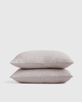 Our most luxurious shams yet, the Washed Silk Pick Stitch Sham Set adds a rich of layer of style to any bedroom. Crafted from high-quality habutai silk, known for its smooth and lustrous texture, these shams offer a truly indulgent sleeping experience. The shams are hand quilted, showcasing intricate pick-stitch detailing that adds a touch of sophistication and artistry to the design. The meticulous craftsmanship ensures durability and longevity, making these shams a worthwhile investment. The reverse side is made of soft and breathable 300 thread-count cotton sateen, while the cotton filling adds a plush and cushioned layer, enhancing the overall comfort and support.