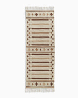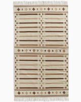 The Winslow Wool Kilim Rug features a global inspired geometric and stripe design and is offered in a neutral palette.