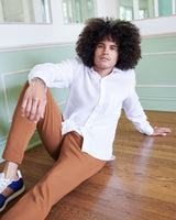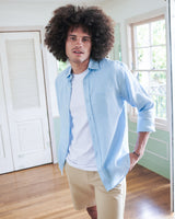 The wash, dry, and go men's linen shirt you've been waiting for. No more wrinkles, just smooth, breezy linen made from the finest quality French flax. Fabric features a rare and patented technology that makes it wrinkle-free without using harmful chemicals. We've kept the cut clean and classic with a rounded hem and point collar.