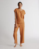 Find yourself craving your linen bedding when you're away? Now you can drape yourself in linen PJs wherever you lay your head. Dolman sleeved with a relaxed fit, and deliberately rumpled look. Elastic waist and side pocketed pants. Our breathable, light, linen collection is made from 100% European flax linen—an eco-friendly, and resource light material.