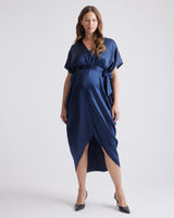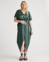 An elevated upgrade to basic maternity wear. This easy-to-wear silhouette is perfect for a date night or destination wedding. With a removable belt, there are multiple ways to wear it. This super flattering fit is made from 100% mulberry silk, in a satin finish. The best part…our silk is washable. Easy to style and easy to wash for low-maintenance luxe. Plus, silk fiber contains 18 kinds of amino acids that make it amazing for skin nourishment, hypo-allergenic, and naturally thermoregulating to help maintain body temperature.